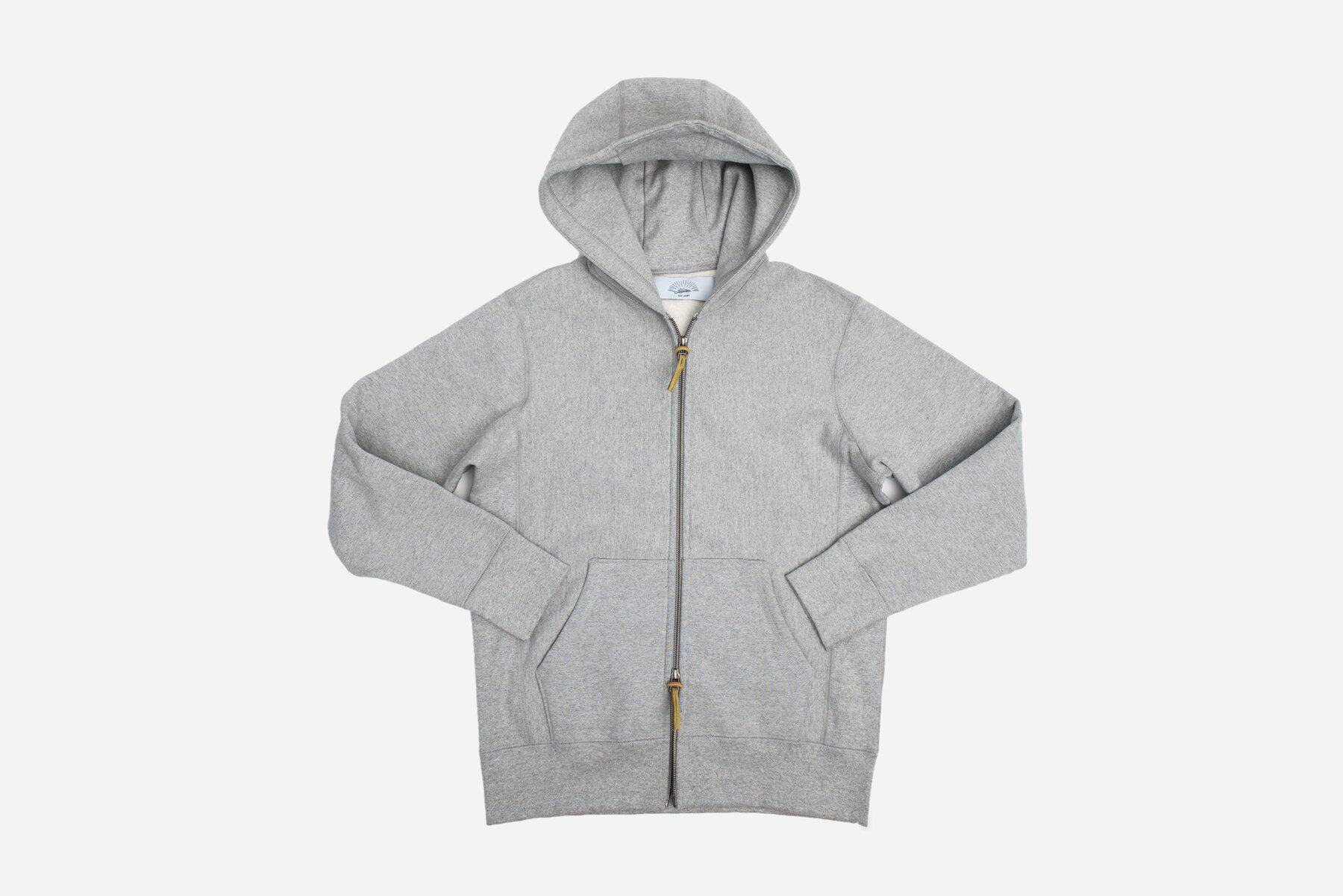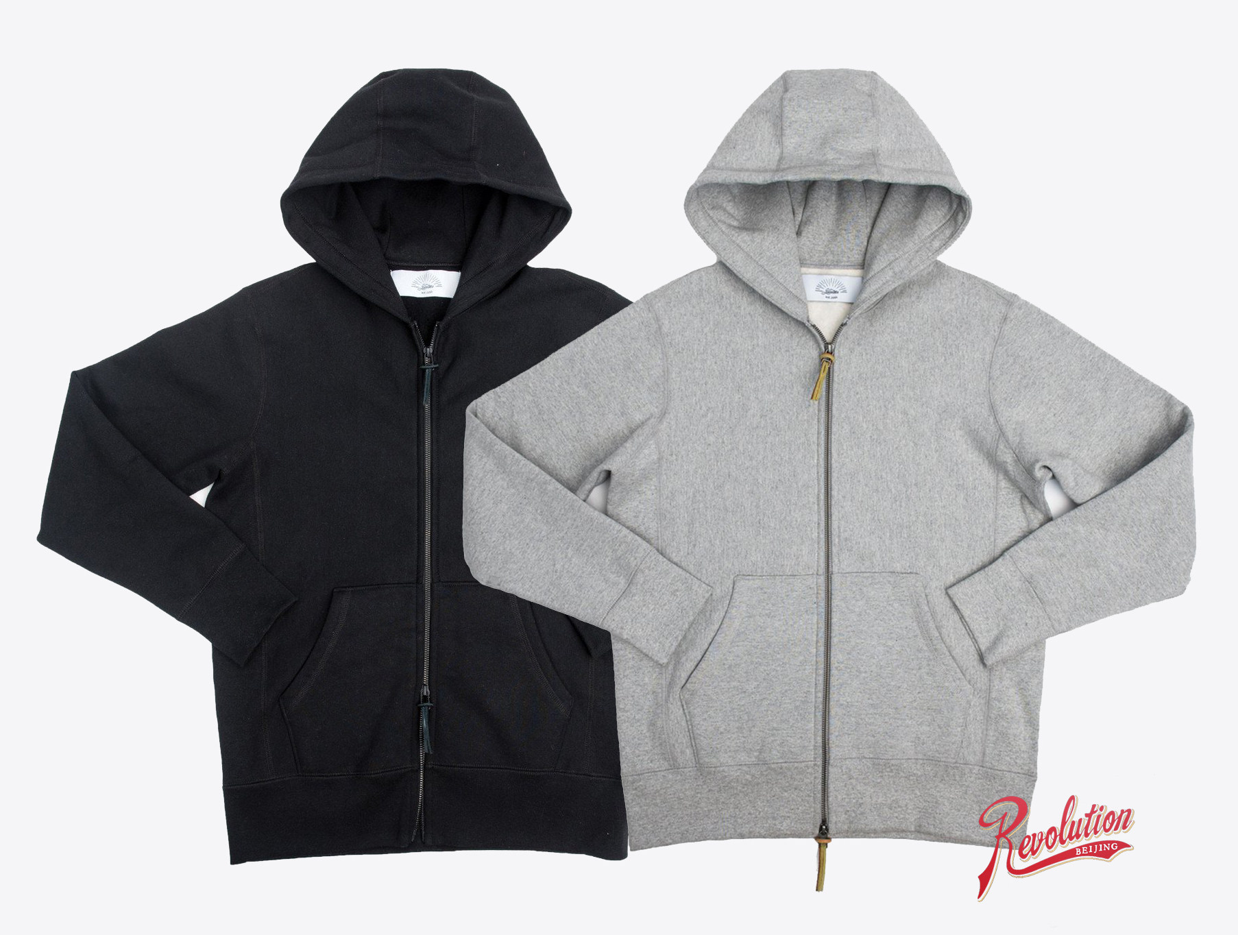 (Old Chen) 3sixteen two-color sweater made in the United States, cardigan with zipper and hood, thick bristle inner Hoody