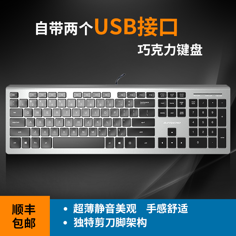 Chocolate Keyboard Cable Desktop Pen Electric External home office Own usb Interface mute keyboard ultra-thin cute Bring your own two usb expansion connector typing dedicated keyboard