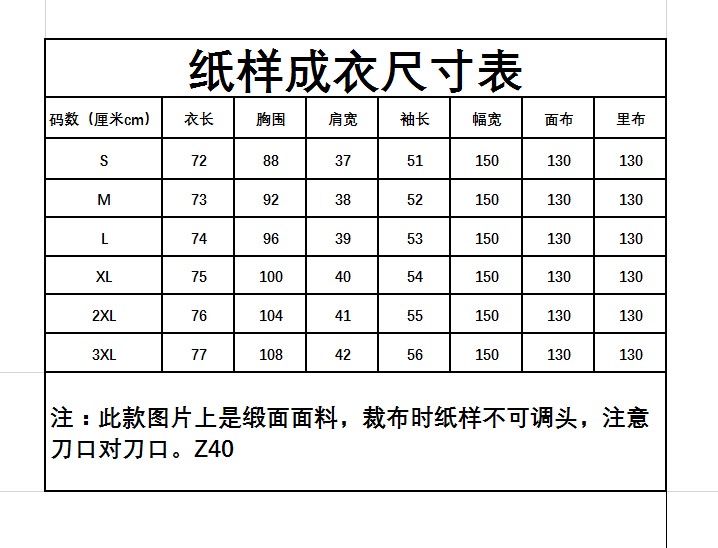 M (white paper sample of coat paper)L (white paper sample of coat)2XL (white paper sample of coat)3XL (white paper sample of coat)4XL (white paper sample of coat