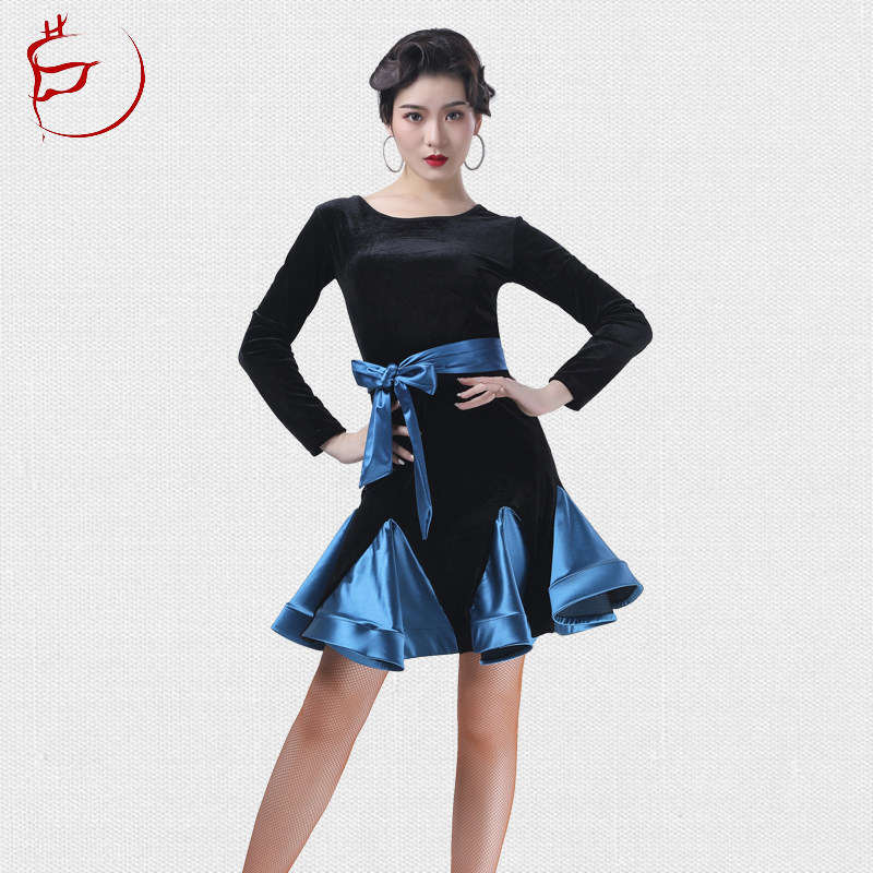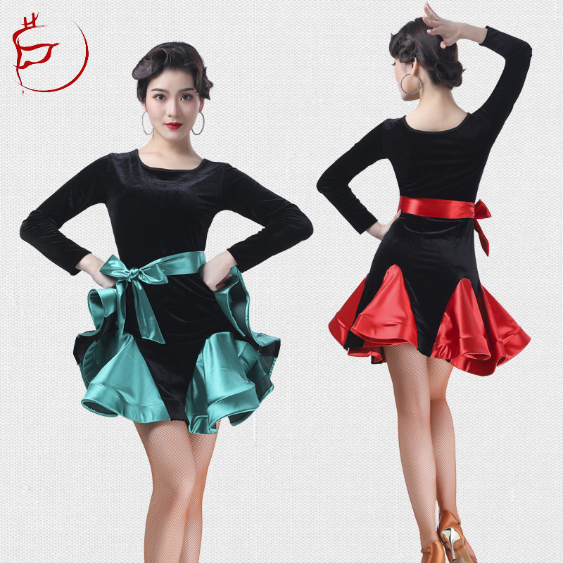 Dance dress Long sleeved adult swing square dance Latin dance practice dress performing dress stitching