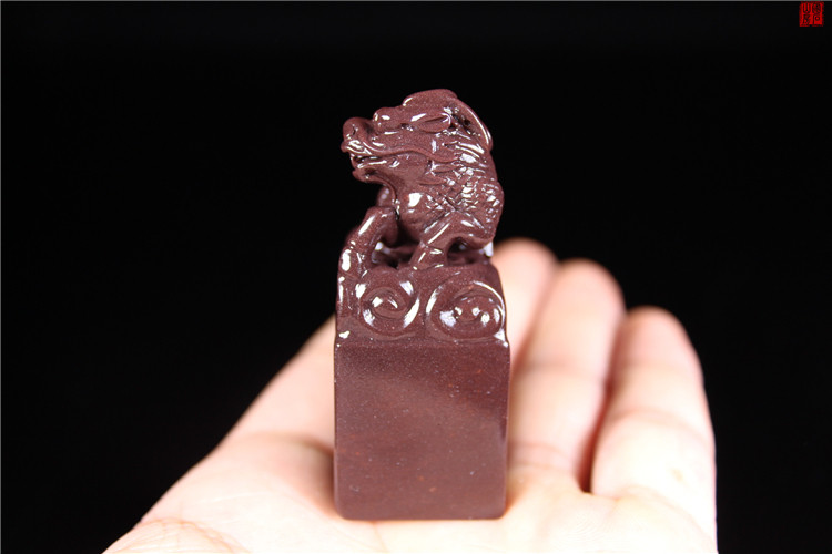 Shoushan Stone Seal Old Pit Character Painting Chapter Moon Tail Purple Oval Seal Seal Seal Qilin Collection Stone Carving Idle Seal Name Seal