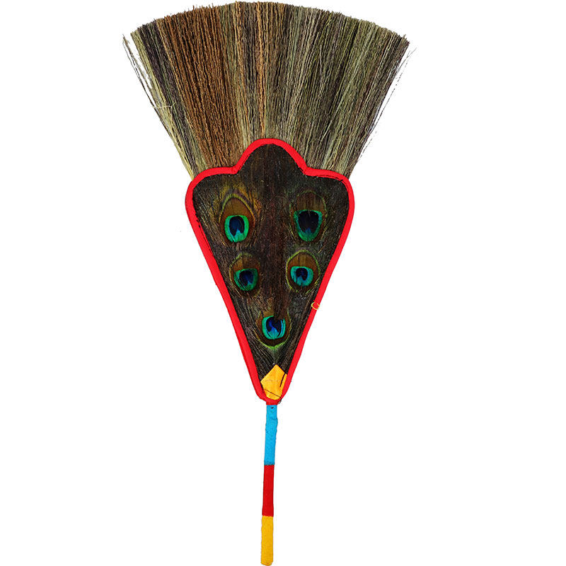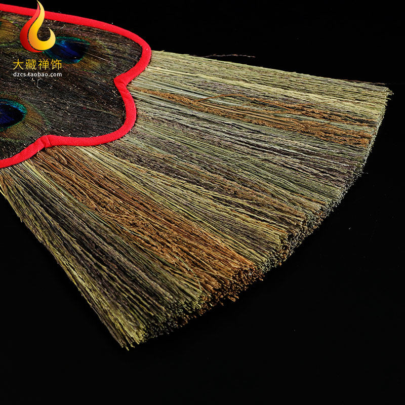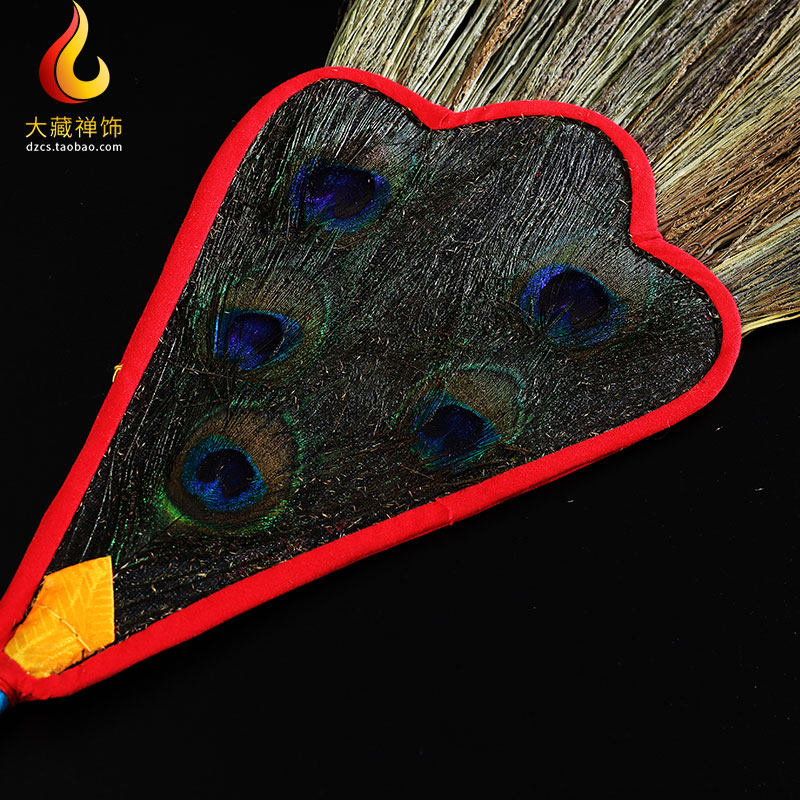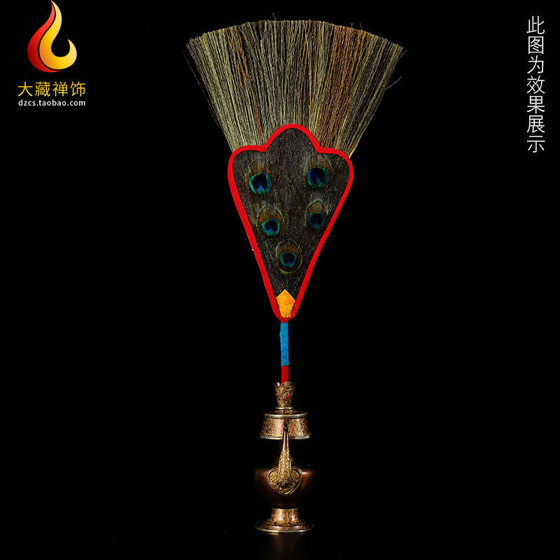 Tibetan Buddhist supplies Buddhist Benba pot Water bottle Peacock feather fan Ancient style 5 eyes auspicious grass