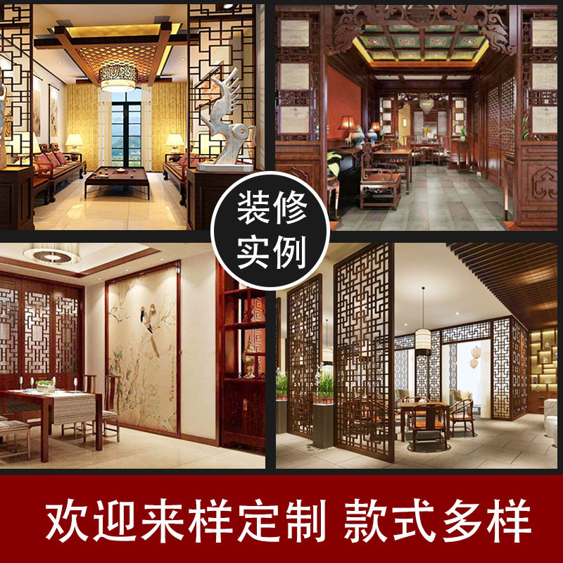 Suspended ceiling decoration antique porch screen partition doors and windows custom made Dongyang wood carving Chinese lattice background wall