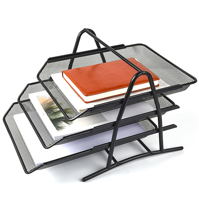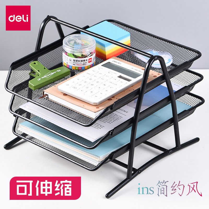 Powerful file box metal multi-layer file rack file basket office supplies iron mesh table finishing folder students with information storage box file storage box