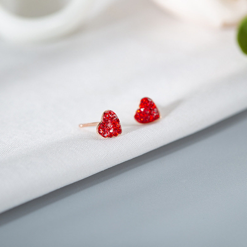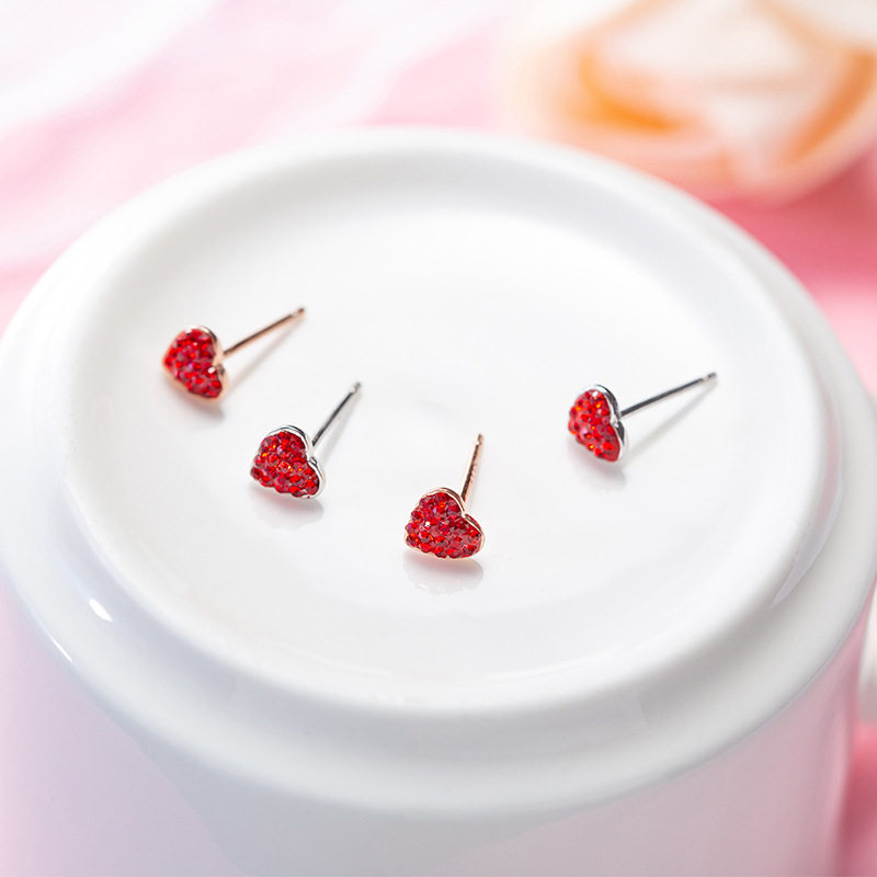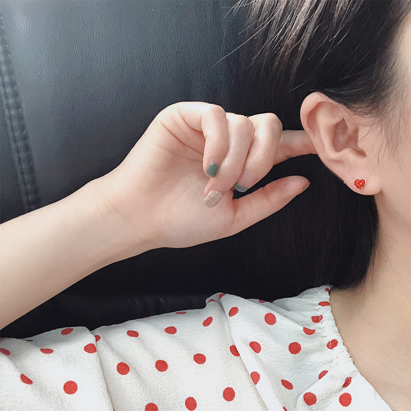 925 pure silver caring inlaid with diamond ear nail sweet and small fresh and large red peach heart full drill son Fairy Earrings Personality-Taobao