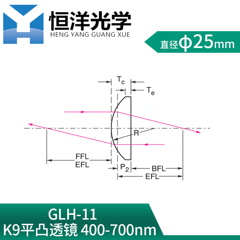 GLH-K9 plano-convex lens diameter 25mm visible light antireflection 400-700nm scientific research experiment BK7 spherical surface
