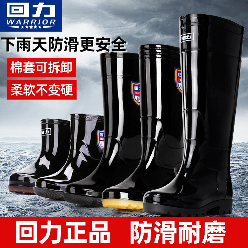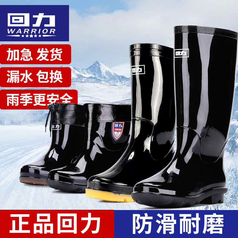 Back Force Plus Suede Rain Shoes Men's Water Shoes Waterproof And Warm Rain Boots Middle Cylinder High Cylinder Water Boots Non-slip Cotton Rubber Shoes Male Fishing-Taobao