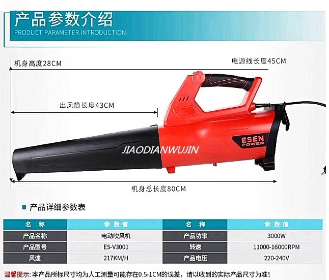 ESEN Yisen 3000W High power industrial electric hair dryer blowing dust machine construction fire extinguishing blowing snow blowing pebble brick