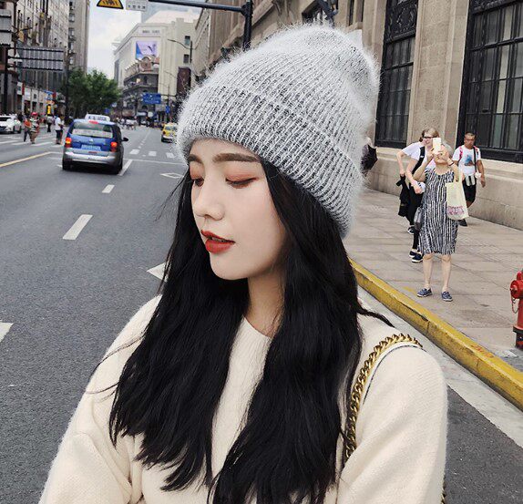 Sweet and cute.,Hairy cap knitted cap