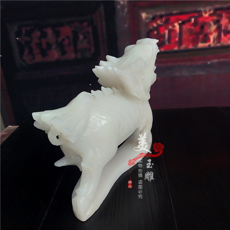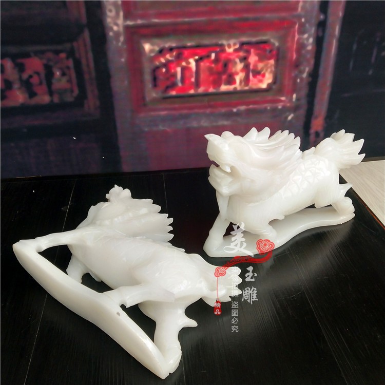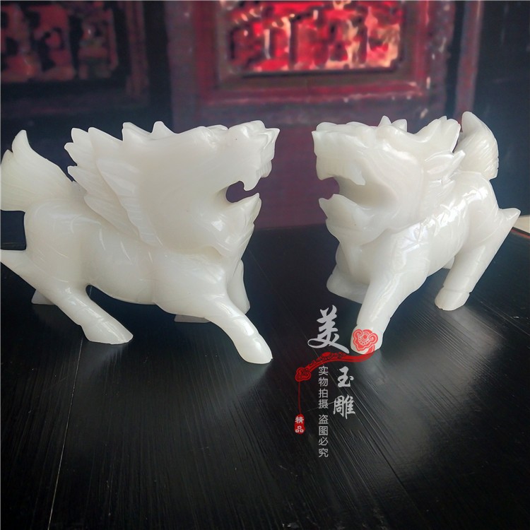 Natural jade unicorn ornaments a pair of large living room office door gift white jade unicorn animal ornaments