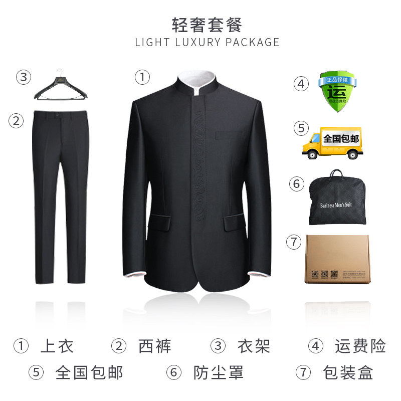 Tunic suit embroidered Xiangyun Chinese stand-up collar suit Chinese style middle-aged father-in-law wedding dress