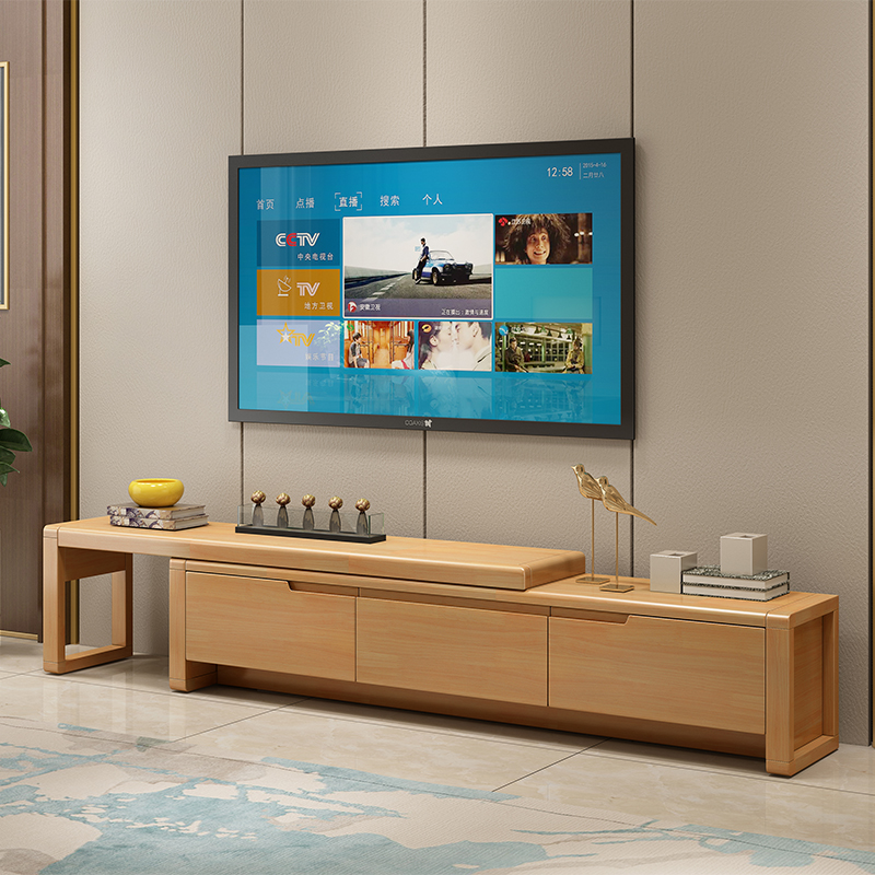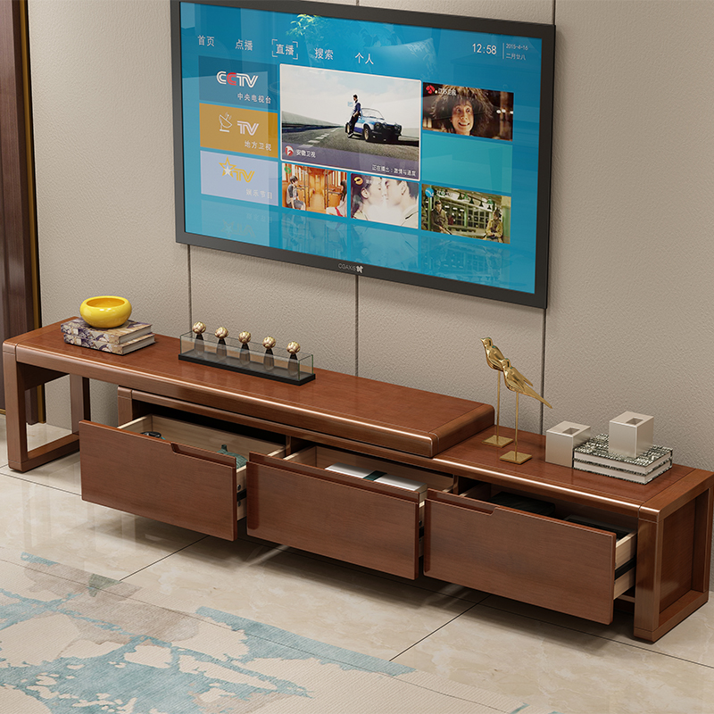 New Chinese solid wood TV cabinet modern minimalist lockers living-room combined multi-draw locker film and TV cabinet-Taobao