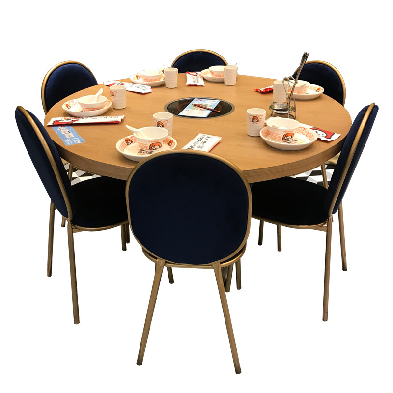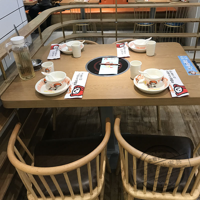 Solid wood hot pot table induction cooker integrated round table dining room self-service barbecue table commercial smokeless hot pot table and chair combination