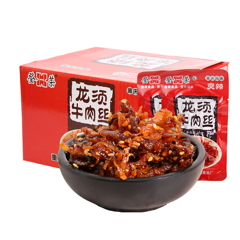 Dengrong Longhu beef shredded spicy strip snacks Spicy childhood beef shredded barbecue flavor Cool spicy spicy strip Chongqing snacks