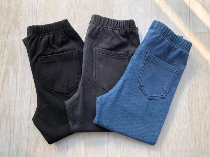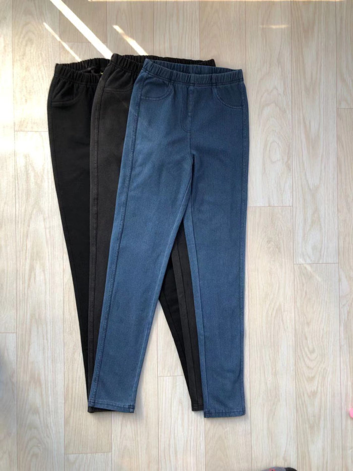 Black Knit Soft Denim Thin Velvet Blue Knit Soft Denim Thin Velvet Black Elastic Waist Thin Small Black Pants