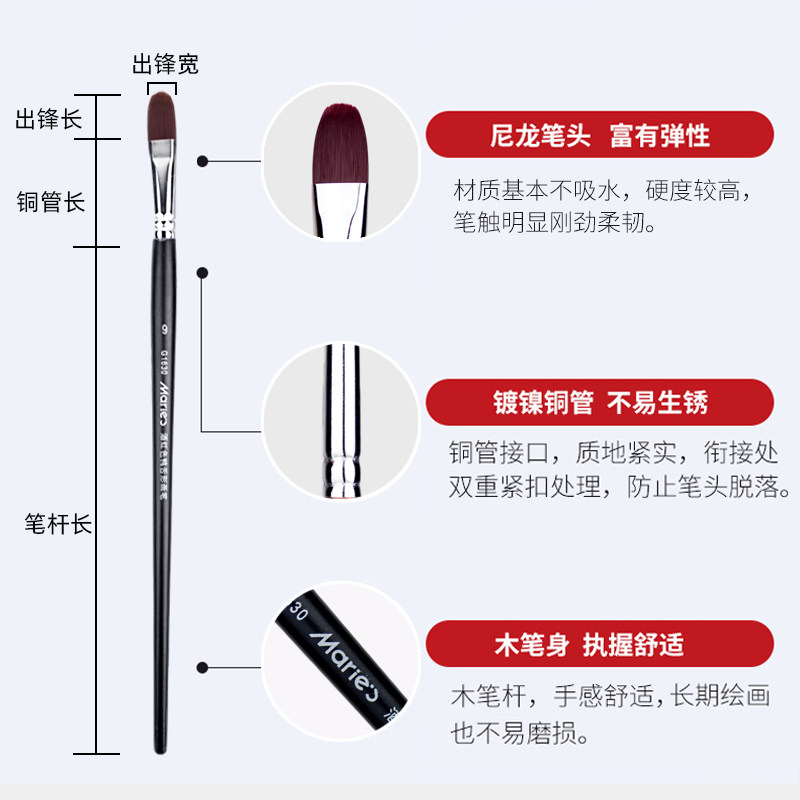 Marley G1630 burgundy duck tongue brush single oil painting pen Art painting beginner pen Acrylic nylon gouache set Oil painting pen single