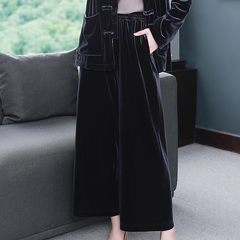 2020 spring autumn new retro velvet wide leg pants woman 90% long pants high waist display slim straight cylinder casual pants velvet pants