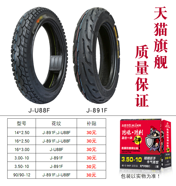 Jiluer electric car wire vacuum tire electric car wire tire vacuum tire explosion-proof 300-10 16*2 50
