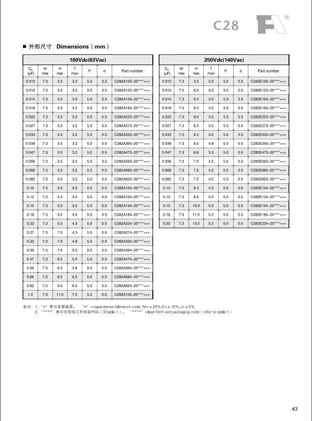 Xiamen Farah C28 CBB capacitive 333 0 033uf 63V C281J333-20 film capacitor