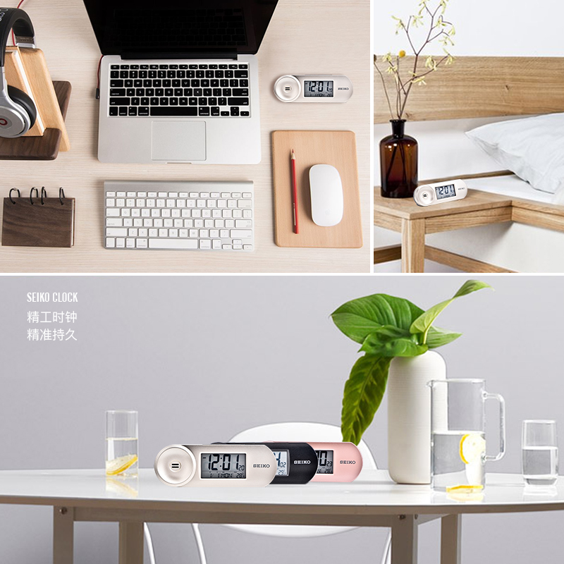 Japan Seiko electronic clock calendar snooze night light thermometer alarm clock home office desk car electronic clock