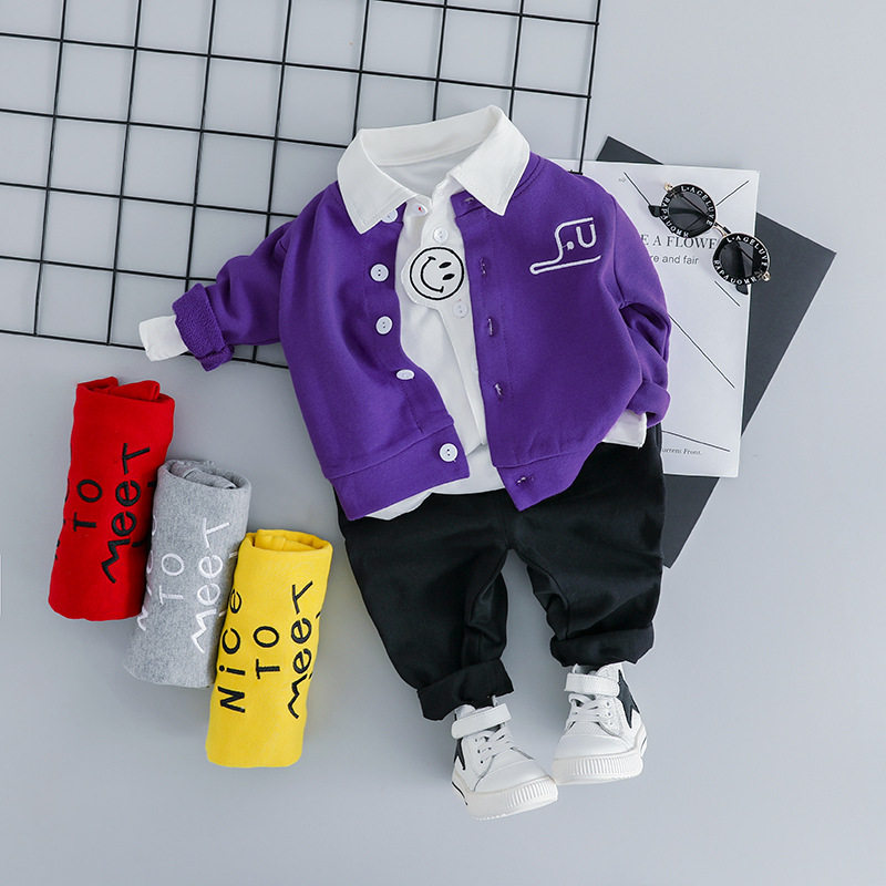 Baby Spring Autumn Clothing Men 0-1 years 2 boys Tidal Baby Clothes Suit Newborn Boy Clothing Three Sets Of Foreign Pie