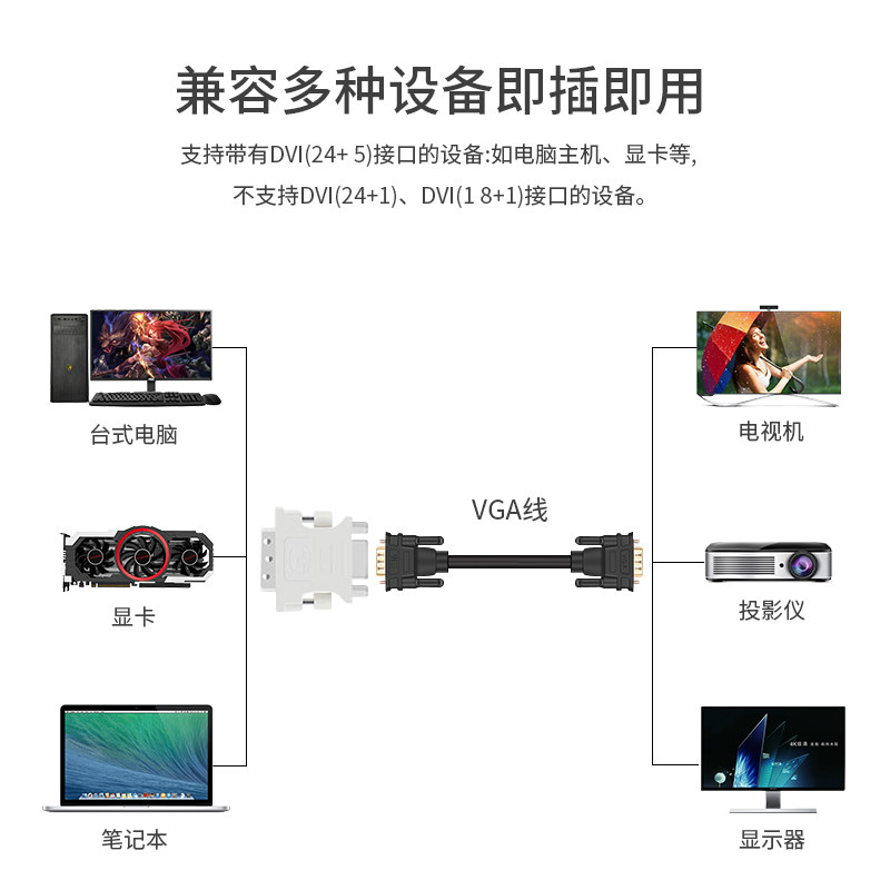 dvi24 5-turn VGA adapter desktop computer host independent graphics card display interface converter dvi-i socket male-to-female dvi to vga LCD TV projector connection