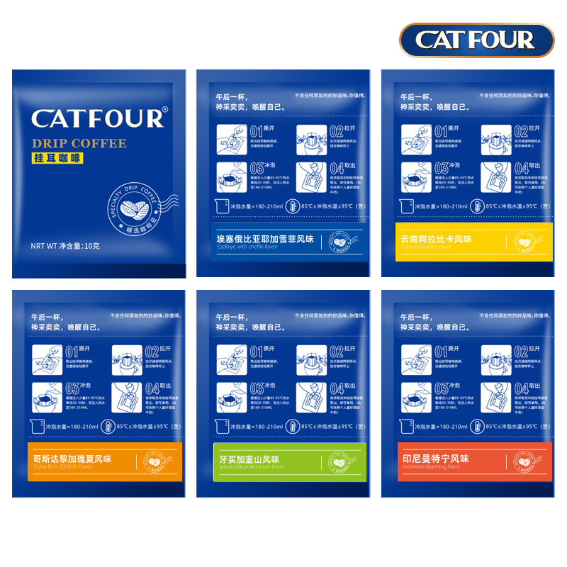 Four cats Italian concentrated earrings coffee beans freshly ground black coffee powder filter box 10 packs * 2 boxes