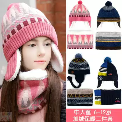 Korean winghouse children's hats for boys plus velvet collar collars cashmere girls big children's ear caps winter