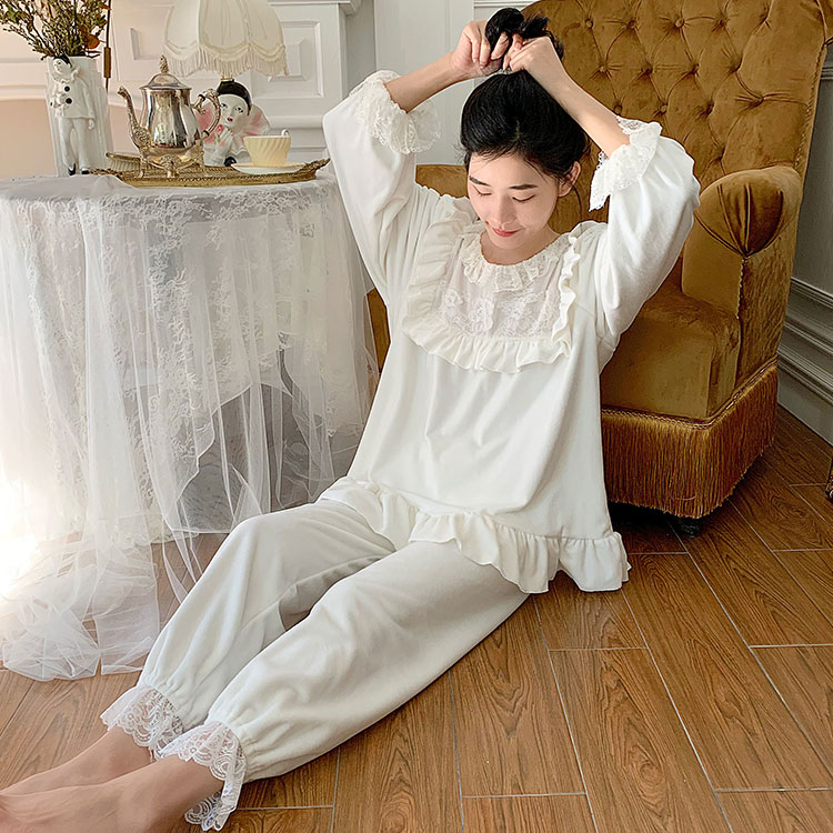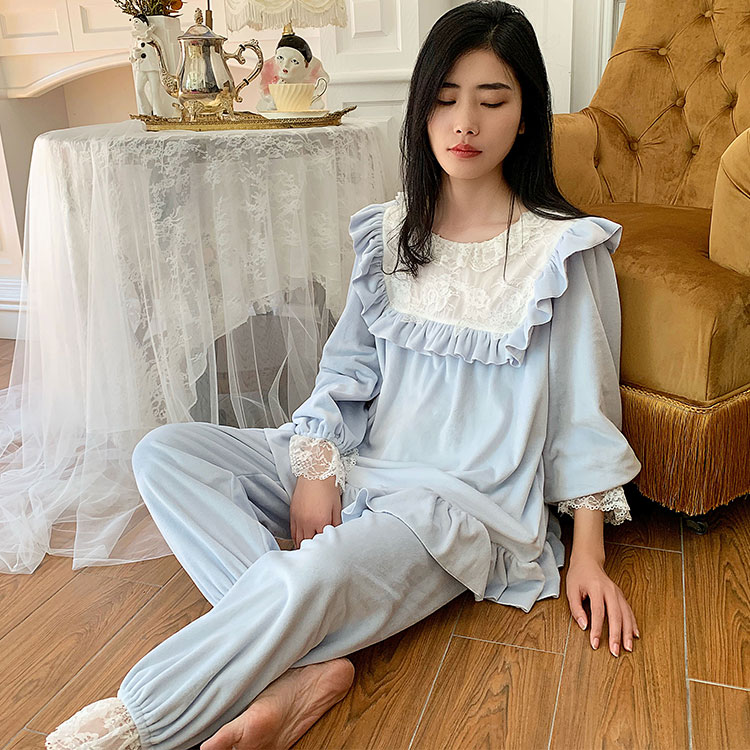 Pajamas Winter Coral Velvet thickness Set Home Winter Flagger Long sleeve Pajamas Princess Sweet Home Clothes
