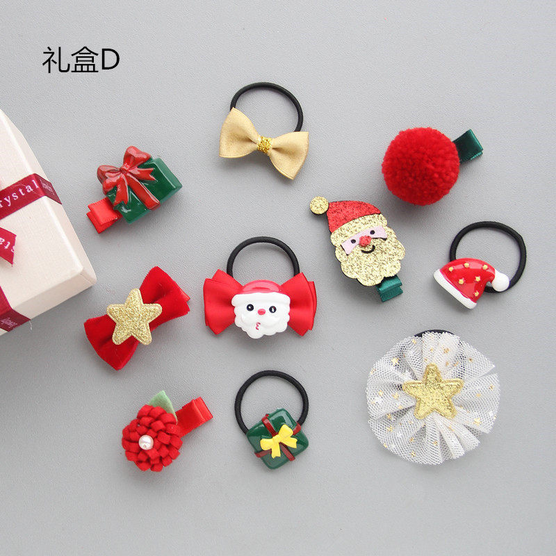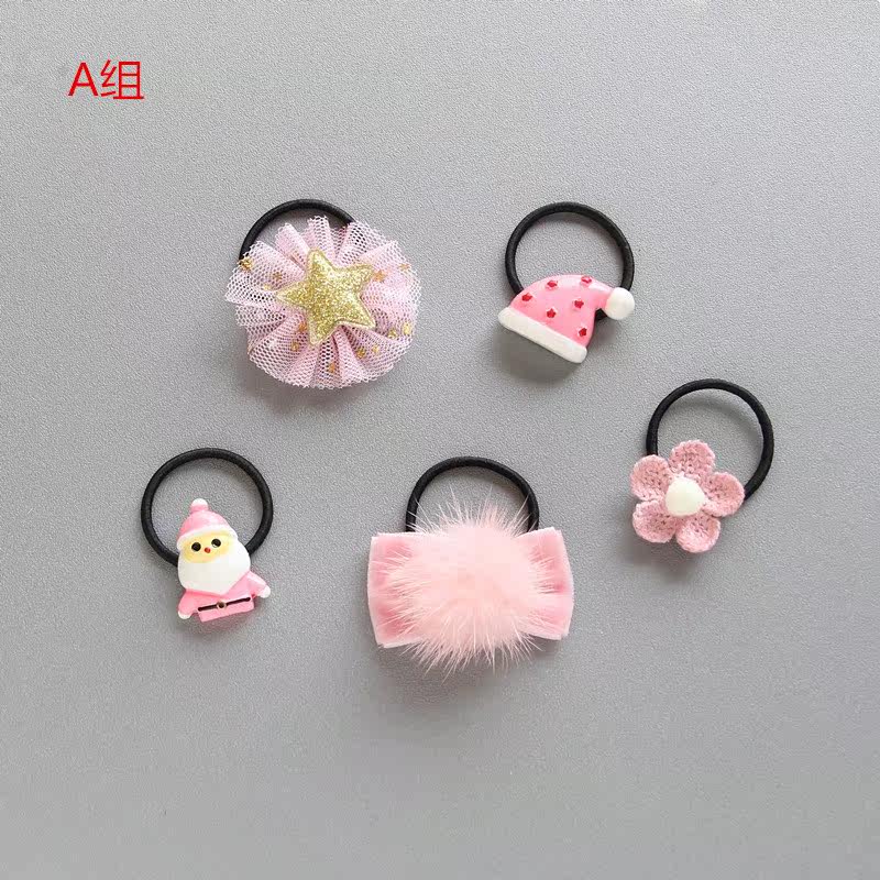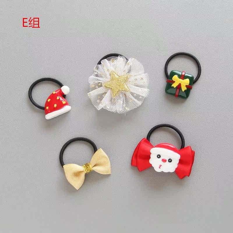 Christmas hair tie 5-piece set E Christmas bow head flower random 10 Christmas hair tie 5-piece set A