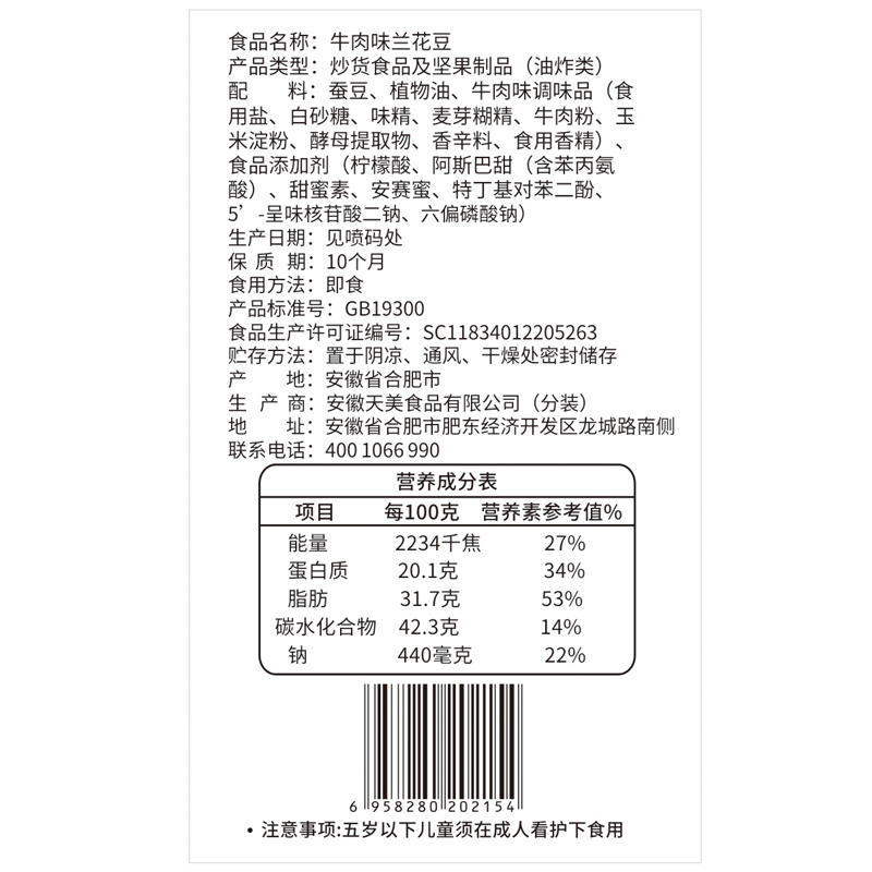 (Fresh orchid 138g1 bag) Casual snacks Fried snacks Beef flavor spicy broad beans