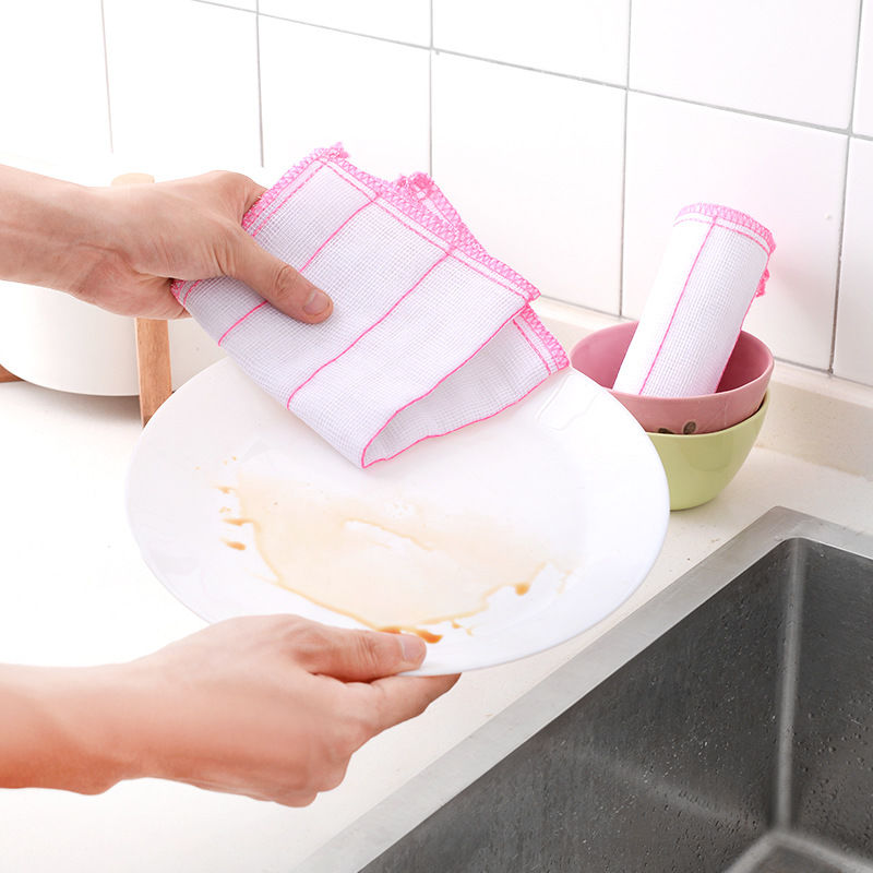 Household kitchen cotton yarn absorbs water and does not lose lint, magic non-stick oil dishwashing handkerchief decontamination cleaning cloth scouring pad