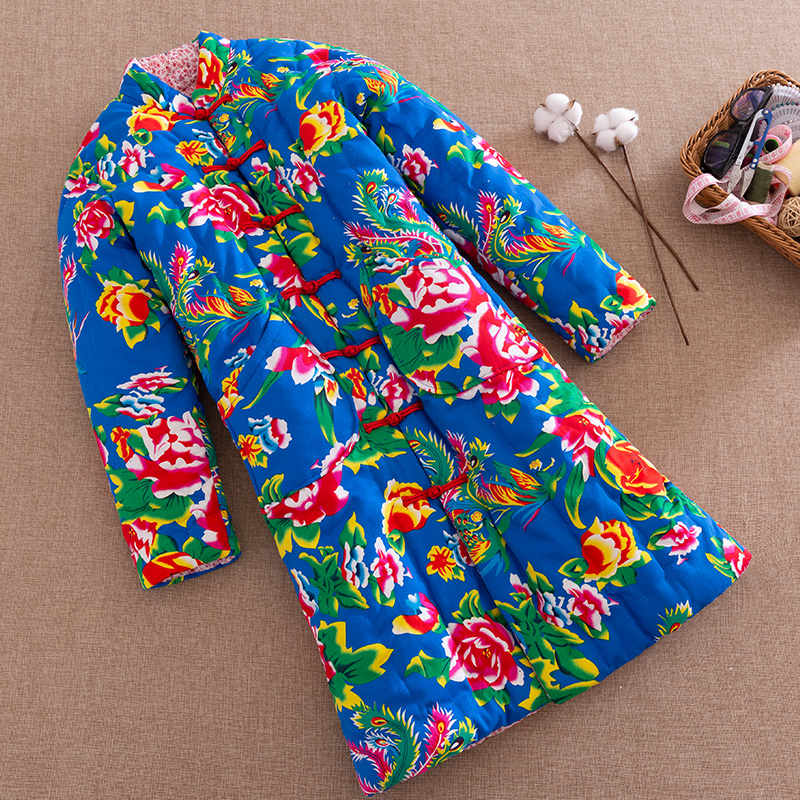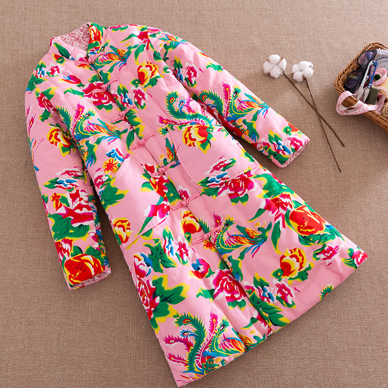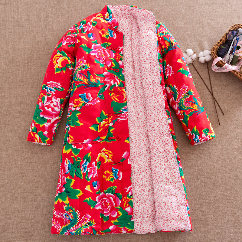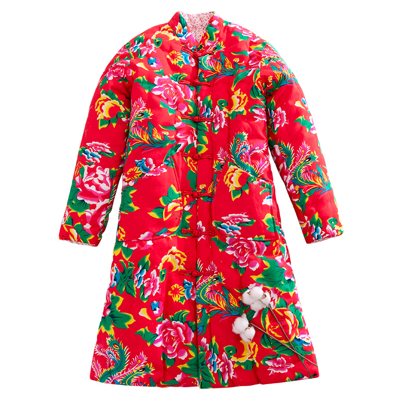 Northeast Great Flower Cloth Cotton Padded Jacket Woman Medium Long Version Pure Cotton Cotton Clothing Lady Thickened Warm Wedding Dress Cotton Clothes Winter