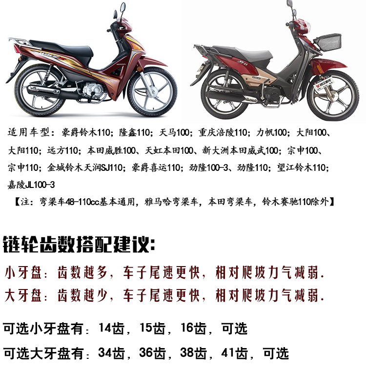 70 - 110 bend beam motorcycle small chain wheel sun Lung Xinjinlong 110 large chain wheel sail Zhongshen Shenjialing dental plate