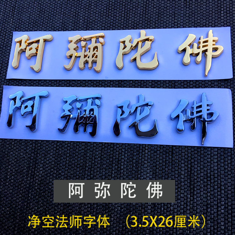 Jingkongmage font Nanmao Amitabha Buddha large Buddhist Three-dimensional car stickers Gold-plated Silver car stickers decorative stickers