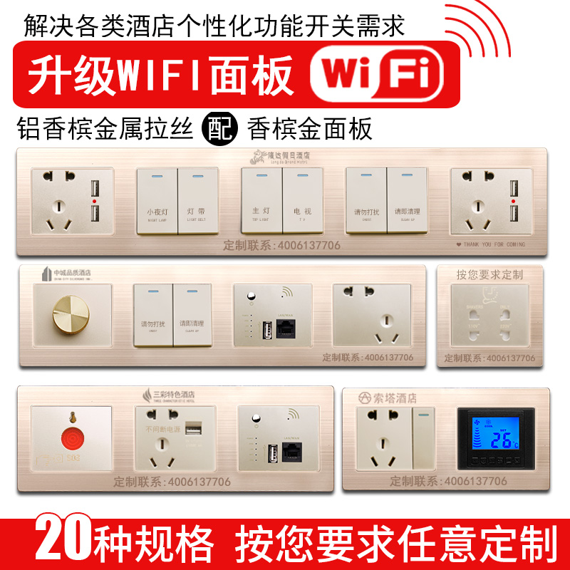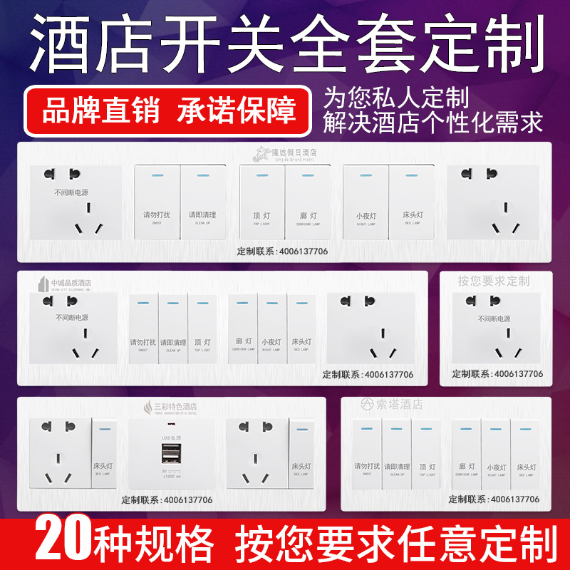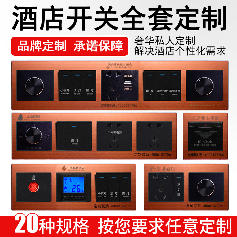 Co-card engraving custom hotel bedside table switch control panel Hotel 86 type one-piece combination switch socket