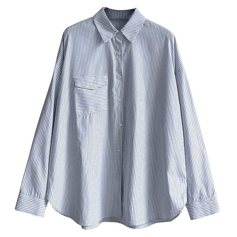 Lonslan Spring/Summer 2021 Homemade Simple Pinstripe Pockets Long Sleeve Girls' Shirts Stacked Shirts