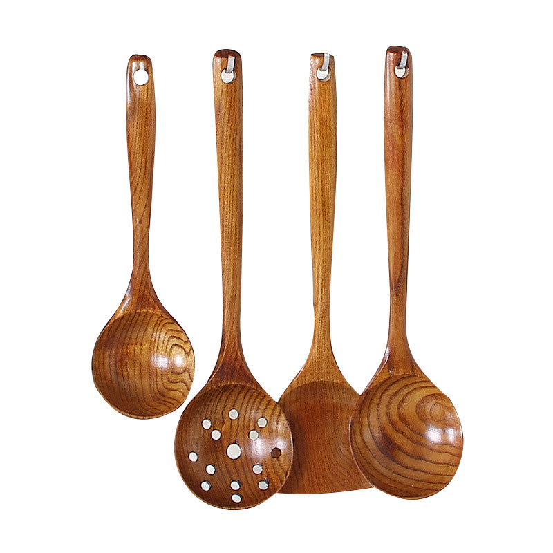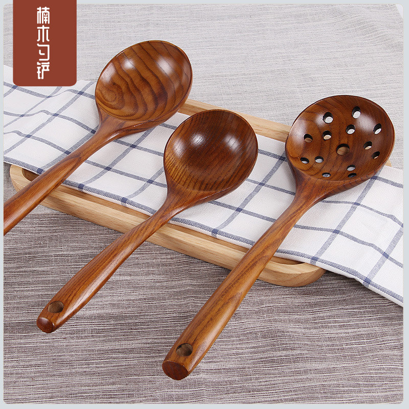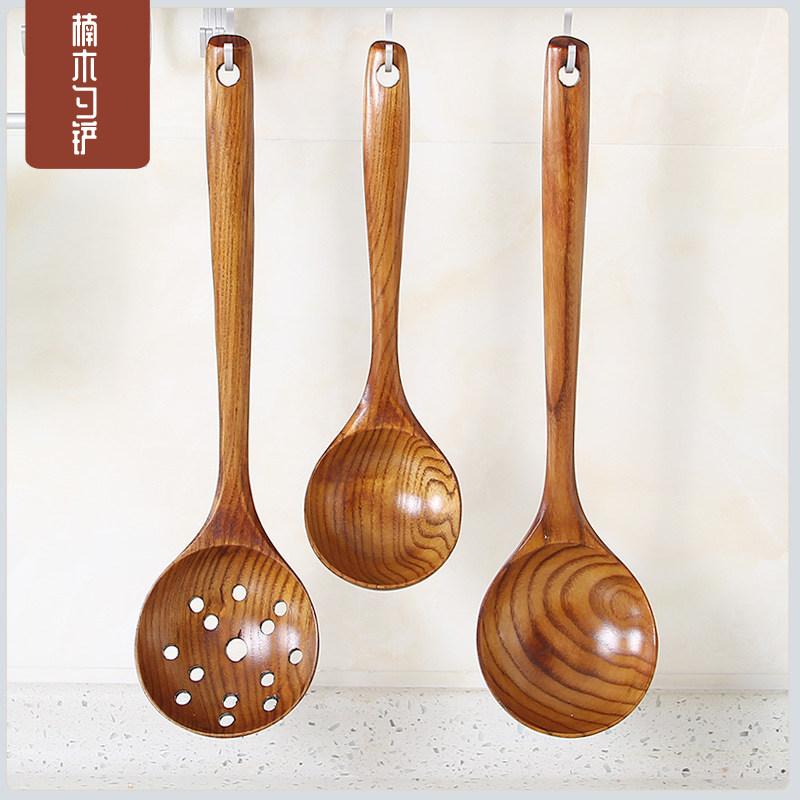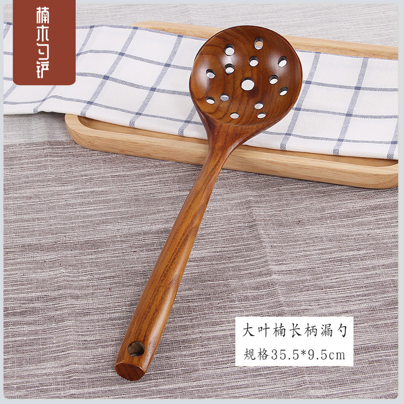 Nan wood long handle wooden large soup spoon Japanese household solid wood porridge spoon rice spoon kitchen pot spatula hot pot colander set