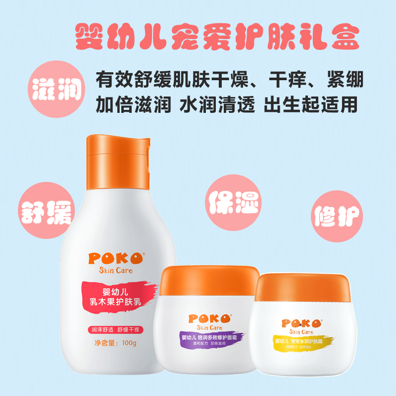 POKO infant skincare group darling gift box (double moisturizing face cream water moisturizing face cream body lotion) 3 pieces