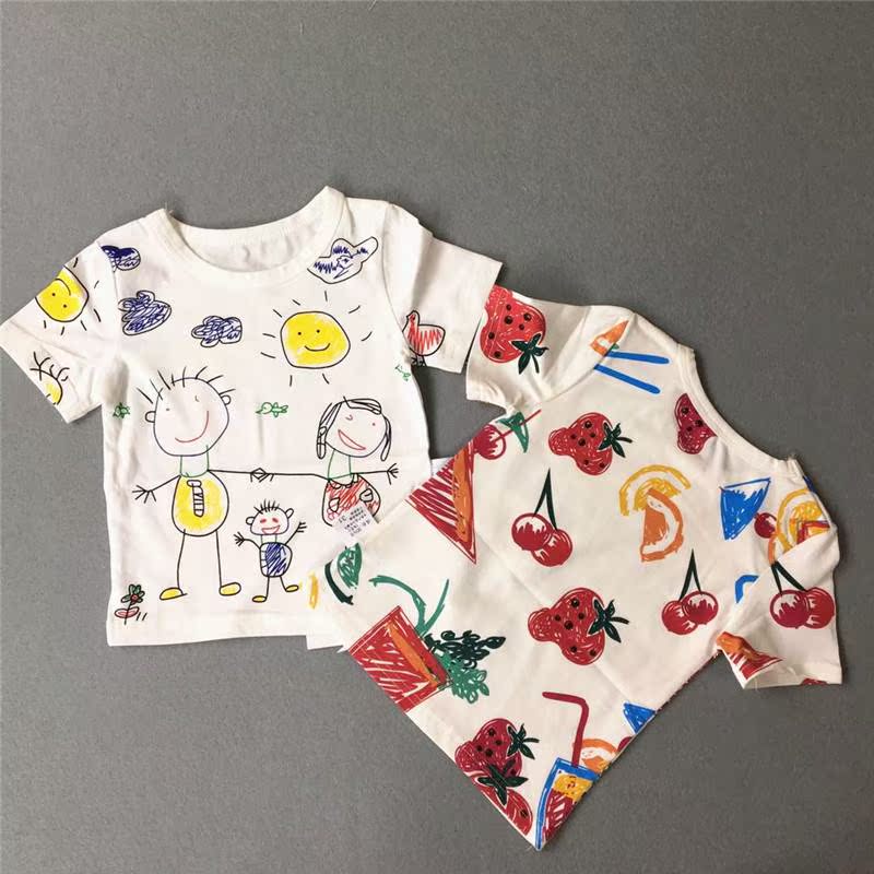 Male and female baby Xia dress new pure cotton slim fit short sleeve T-shirt baby cute graffiti half sleeve undershirt blouse