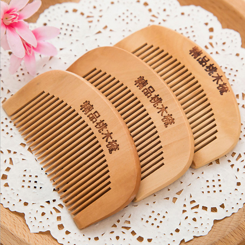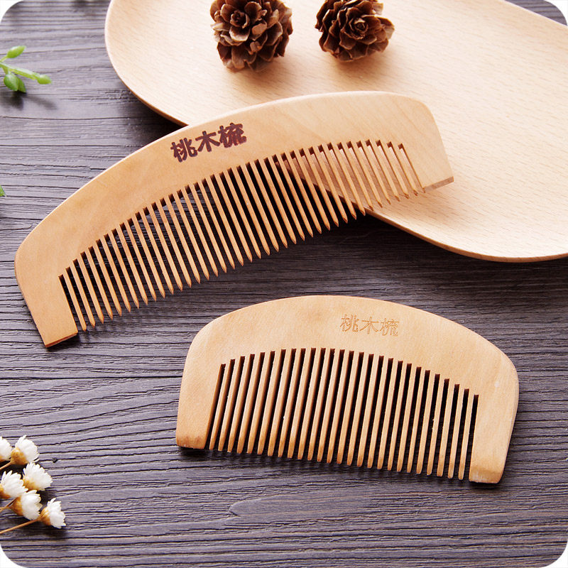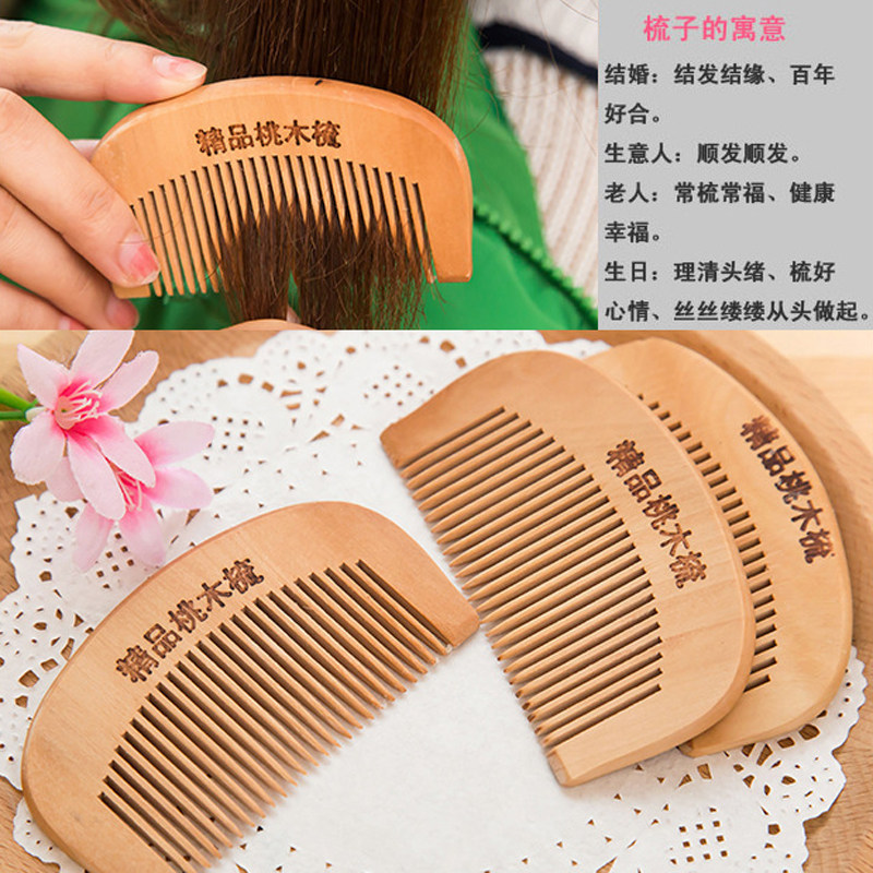 Natural wood comb with mini students anti-static wood anti-hair loss small teeth authentic long peach comb