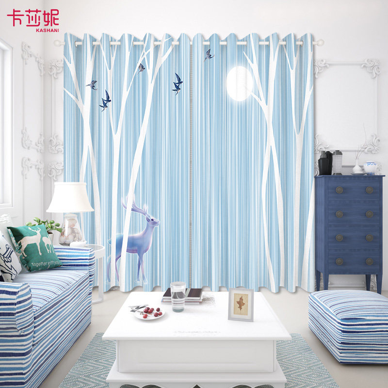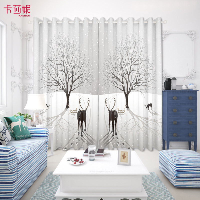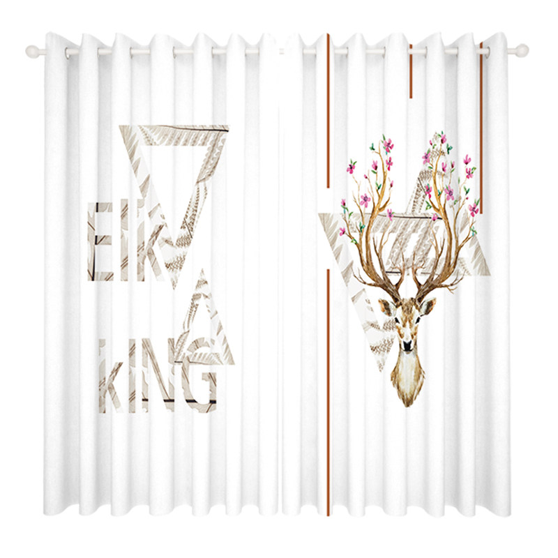2023 new custom American modern minimalist ins Nordic elk curtains children's bedroom living room floor-to-ceiling window screens