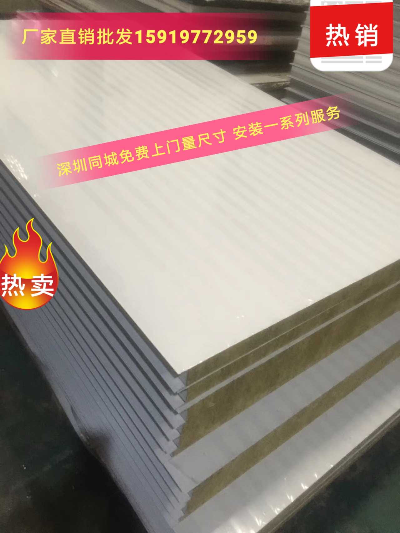Shenzhen Rock Wool Color Steel Sheet Partition Wall Fire Rock Wool Color Steel Sheet Foam Color Steel Sheet Glass Bomei Board Suspended Ceiling Wall Blocking Partition Wall