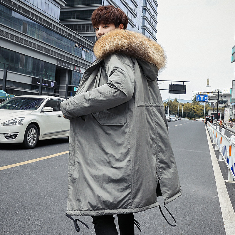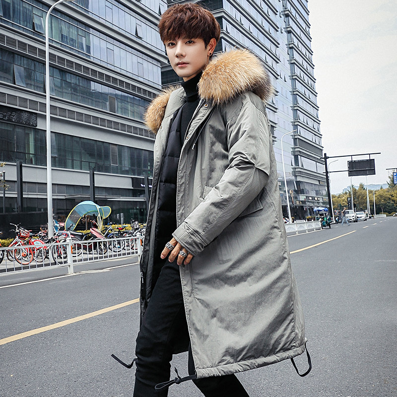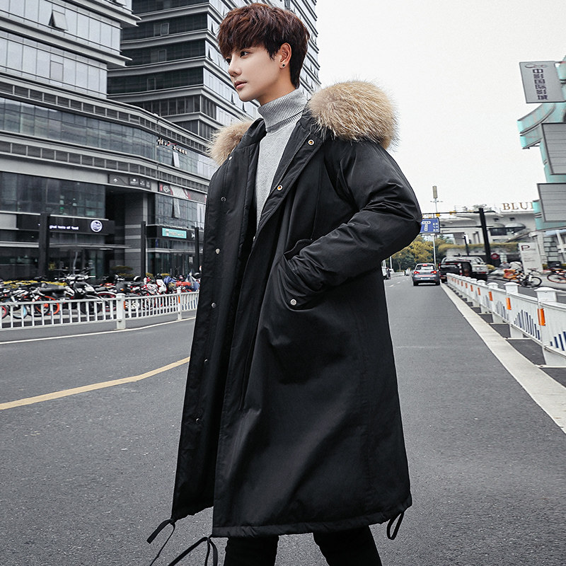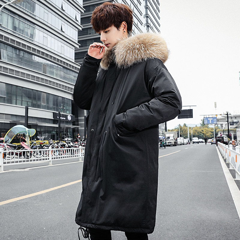 2019 winter new men's coat big hair collar down jacket medium and long version Korean version of the trend over the knee Parker suit windbreaker