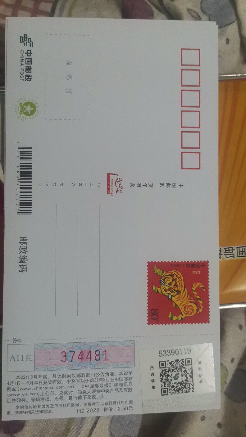 2022 Tiger Year White Piece of the Chinese Post Office Annual Award Post - card DIY National Edition Special HZ