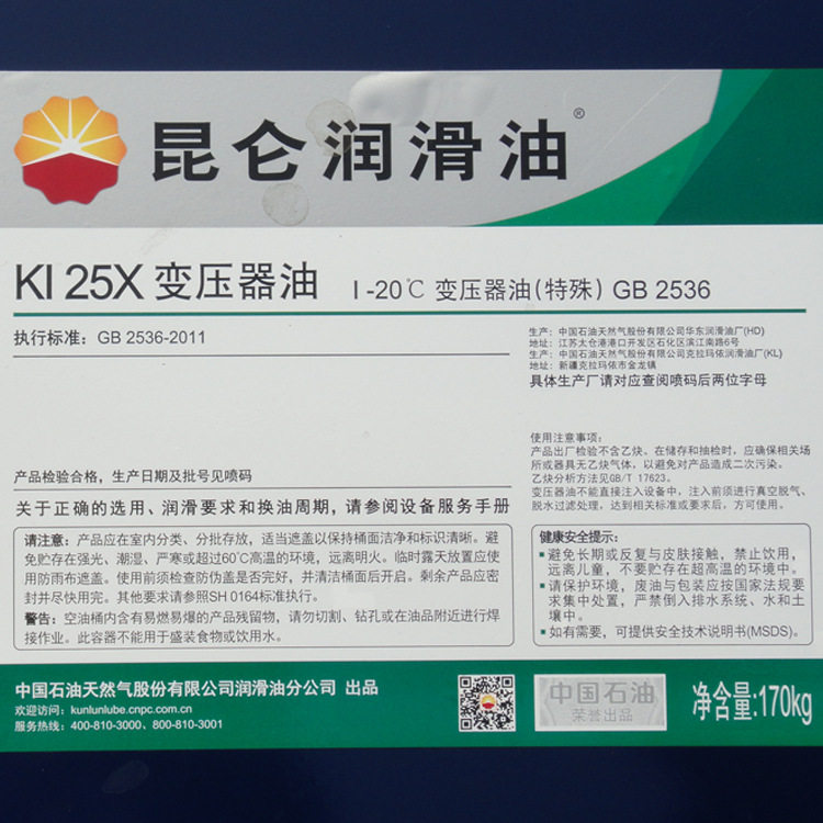 KI 25X Electrical Insulating Oil Karamay Kunlun No. 25 Transformer Oil 170KG invoiced