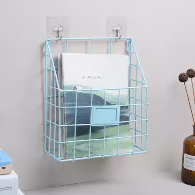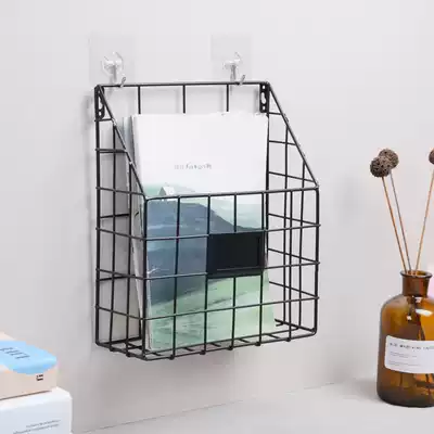 Nordic wrought iron wall rack bedside dormitory magazine basket book wall hanging storage shelf living room storage artifact