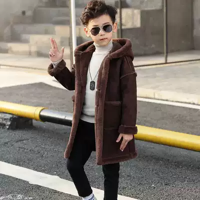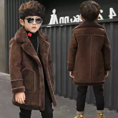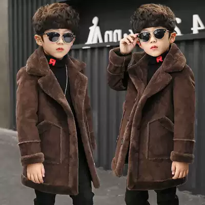 Boys' woolen coat medium long version 2020 winter New Korean version of the child fur one plus velvet thick coat