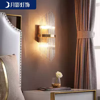Moon shadow Kaiden all copper Nordic simple creative living room background wall lamp Light luxury crystal wall lamp Bed head lamp Bedroom lamp
