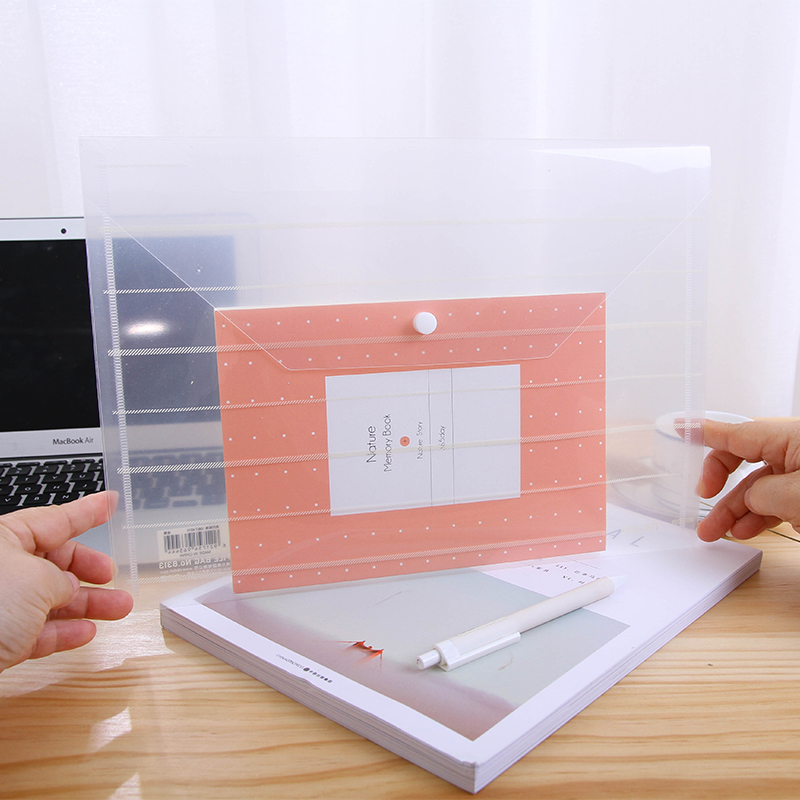 Right-hand Plastic File Bag Transparent Archival Bag Press Kit kit Paper bag A4 button Bag Office Supplies